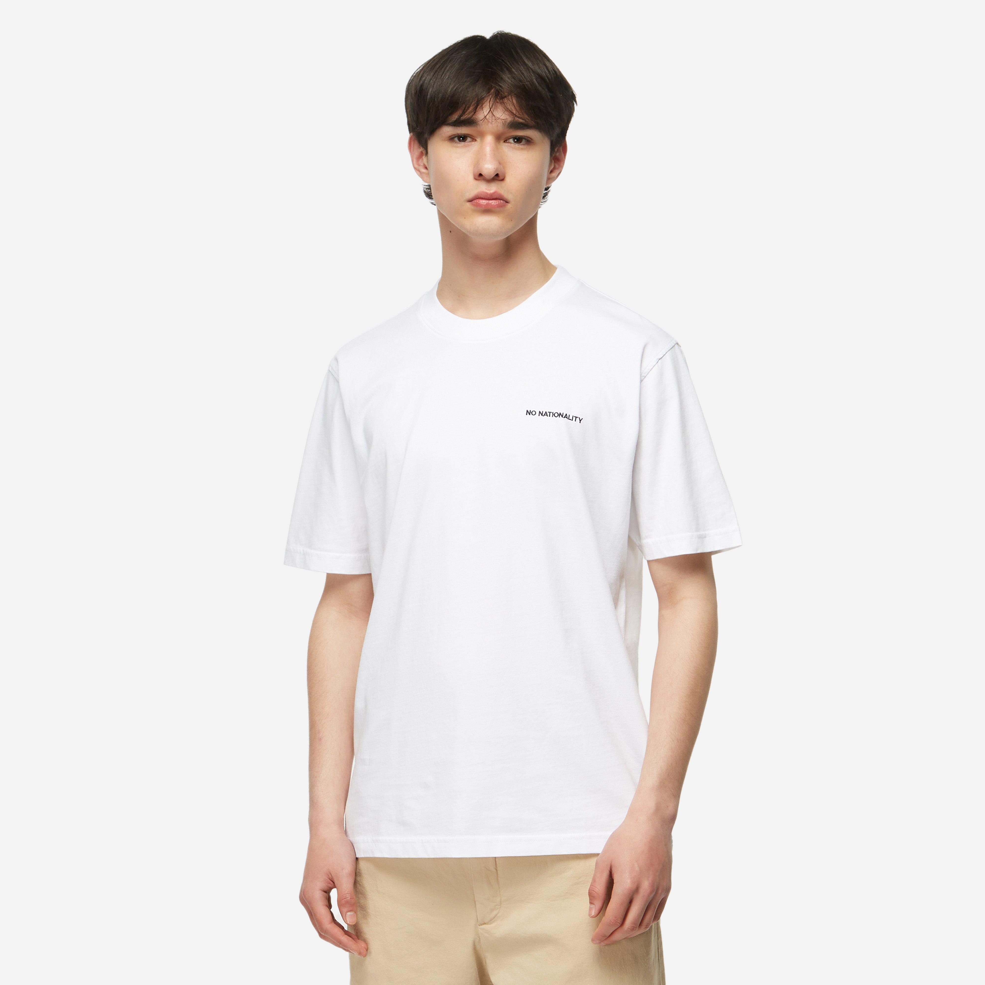 White - 100% cotton - Twin needle stitching - Printed branding - Regular fit, take your normal size - Model is 6'1" and wears a medium.