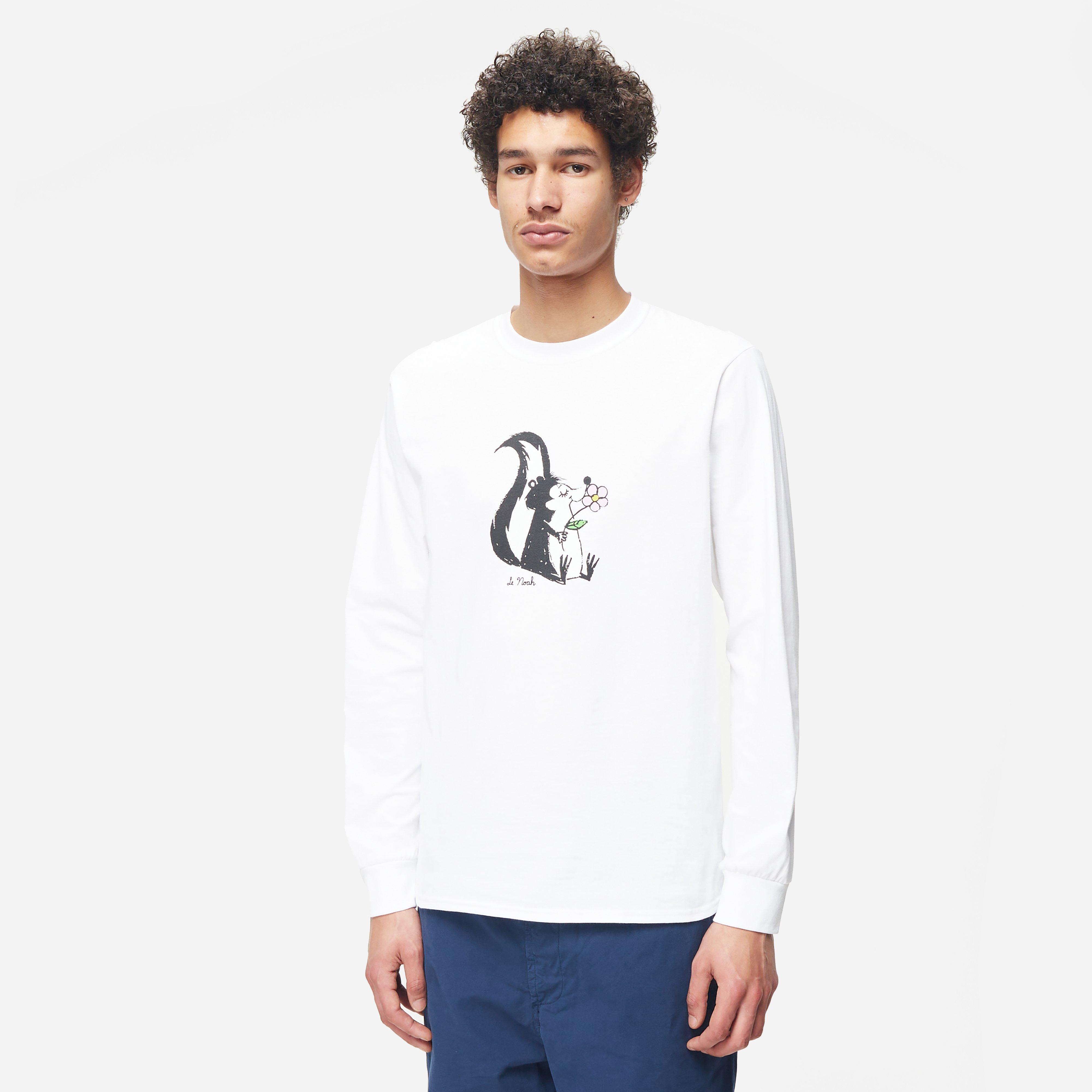 White - 100% cotton - Printed artwork - Ribbed cuffs - Printed in the USA - Regular fit - Model is 6'3" and wears a size medium.