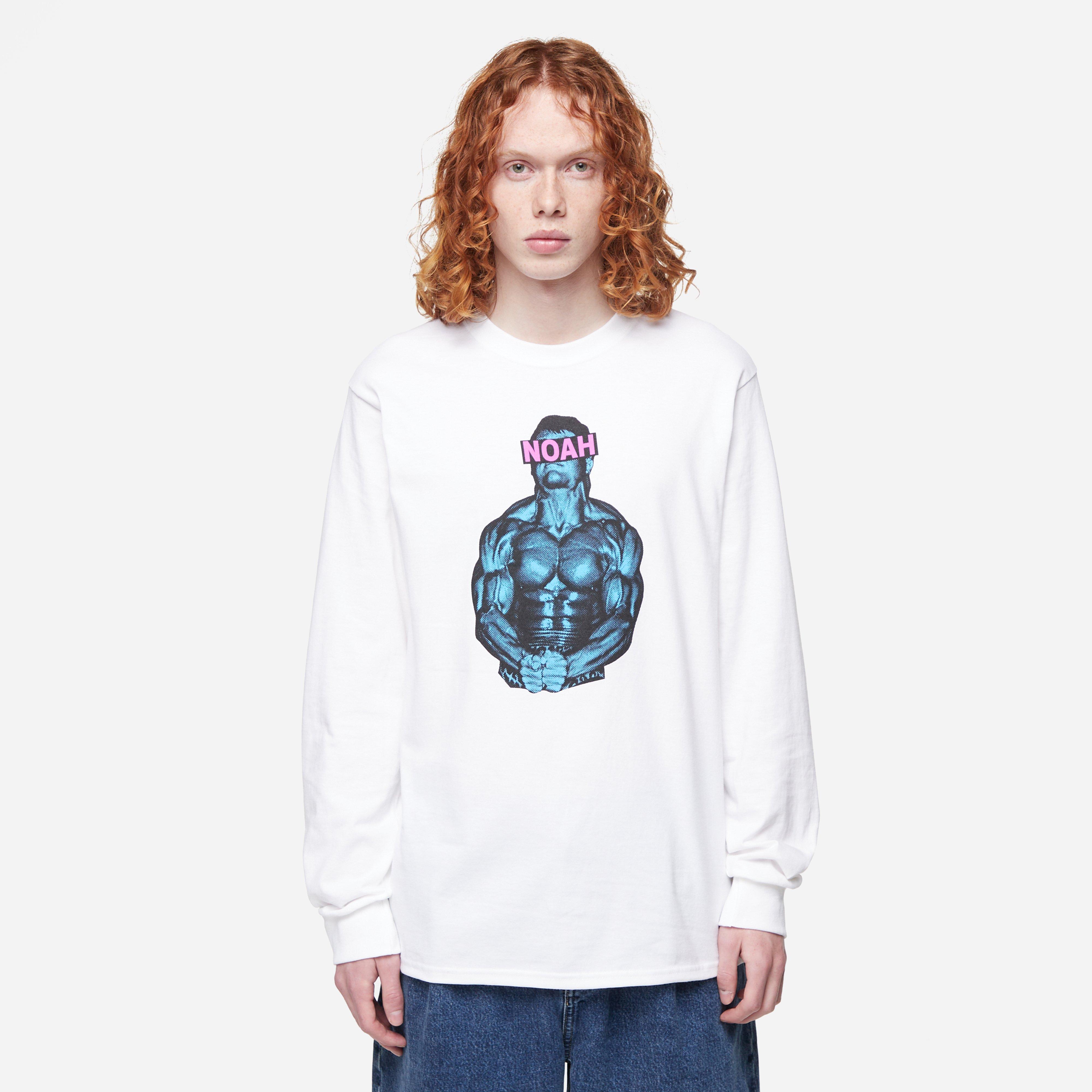 White – 100% cotton – Ribbed trims – Graphic print – Model is 6’1’’ and wears a size medium.