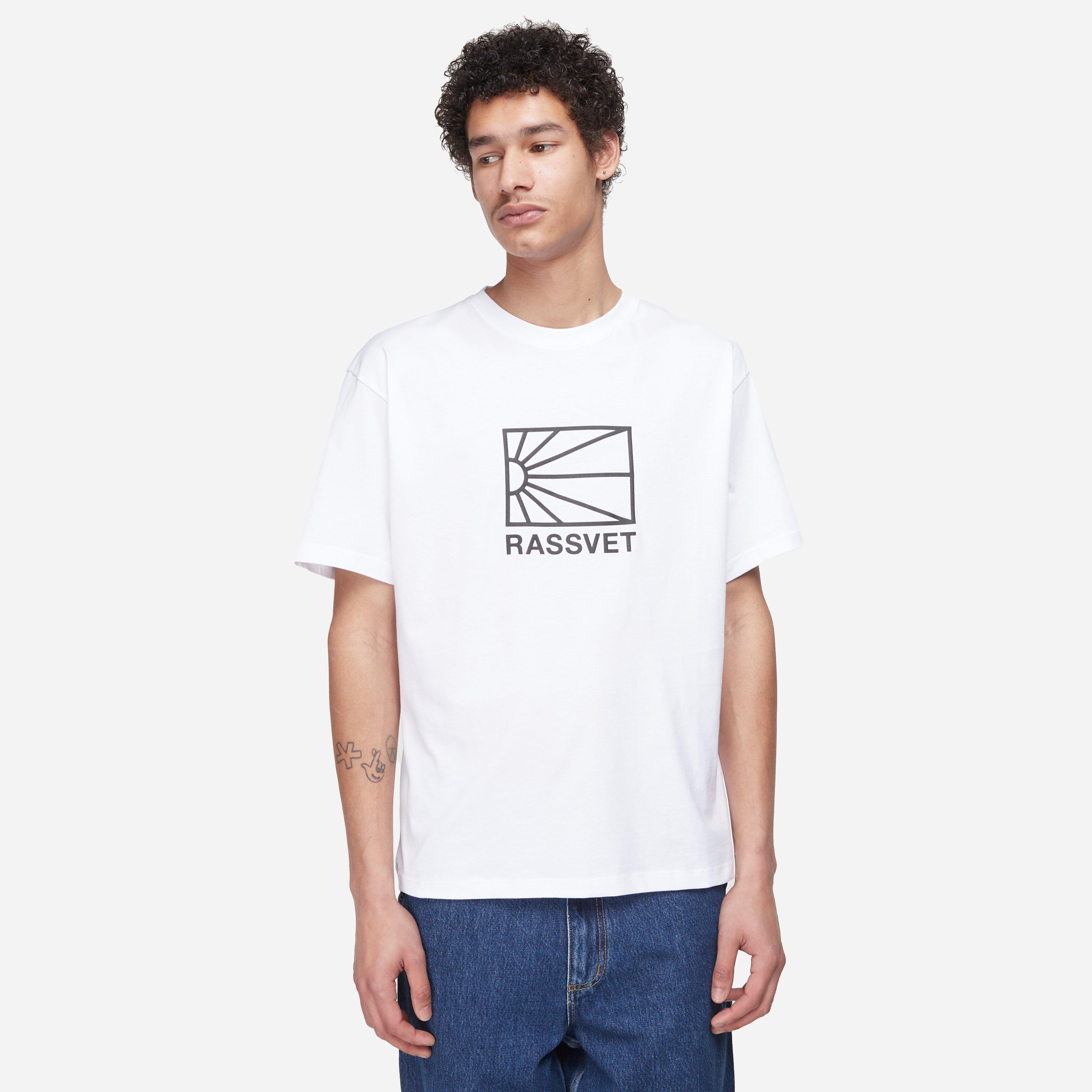 White - 100% cotton - Printed graphic - Relaxed fit - Model is 6'4" and wears a size medium.