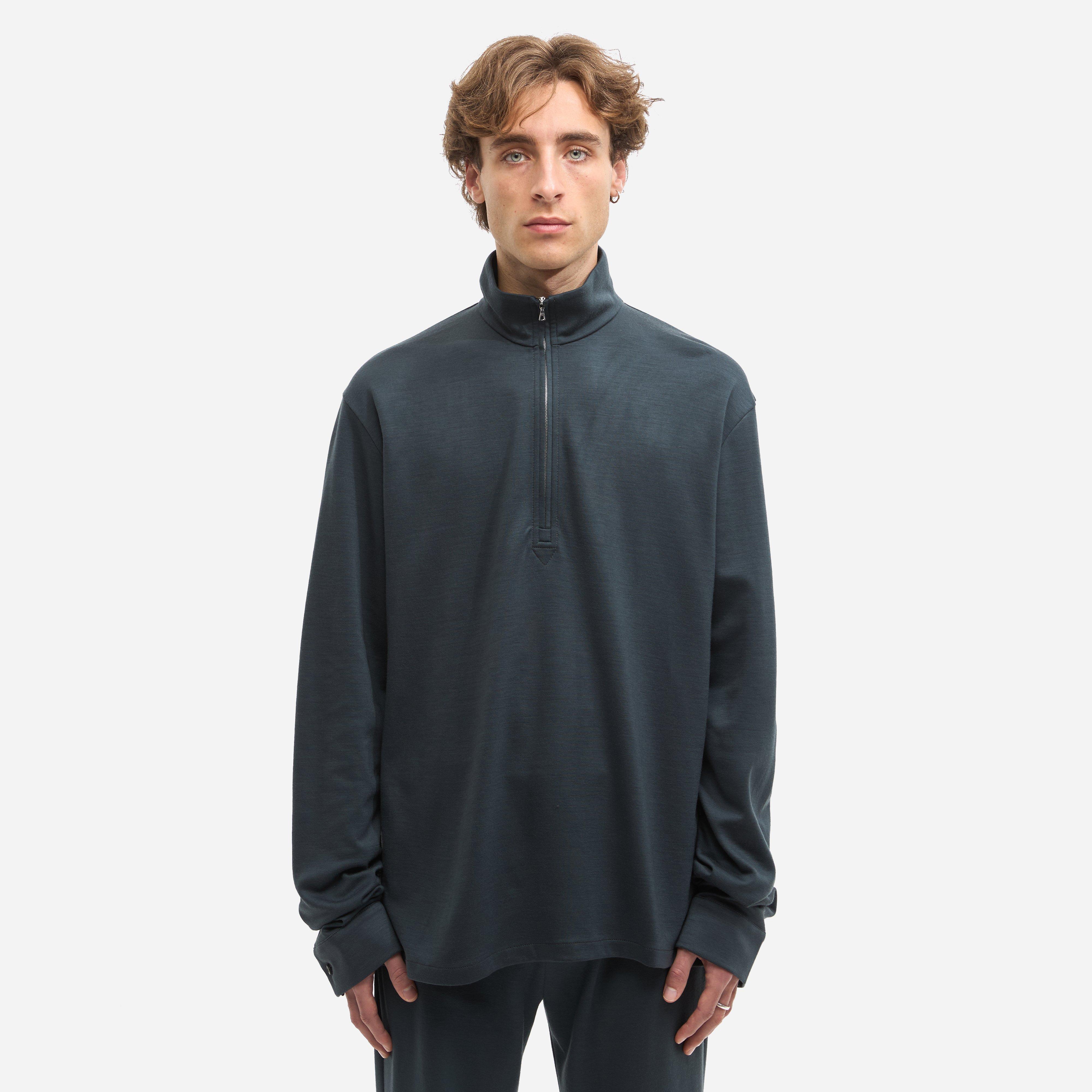 100% wool - Made in Italy - High neck_Half zip - Straight hem - Relaxed fit - Model is 5'11" and wears a size medium