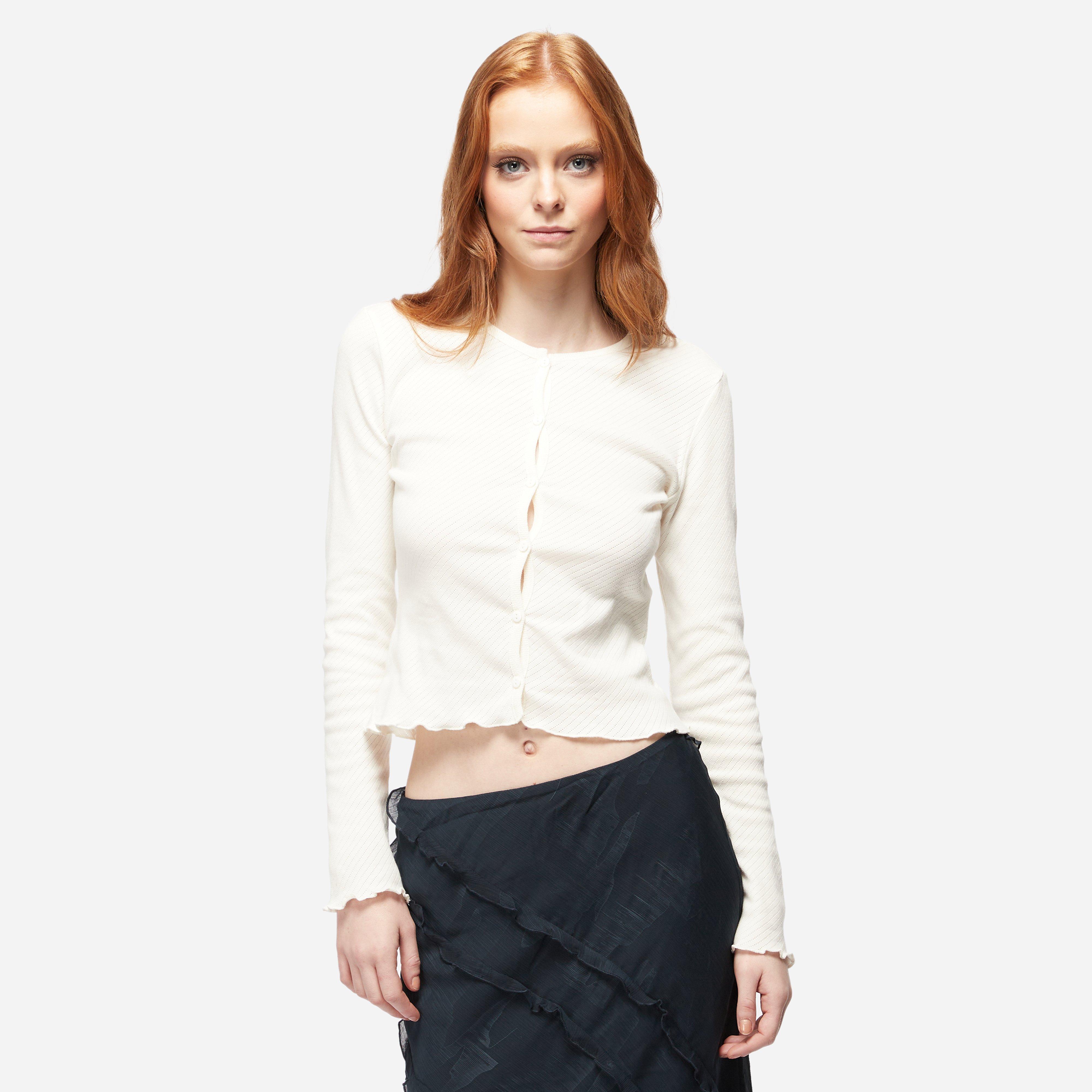 White - 100% cotton - Button closure - Frilled cuffs and hem - Slim fit, take your normal size - Model is 5'9'' and wears a size small.