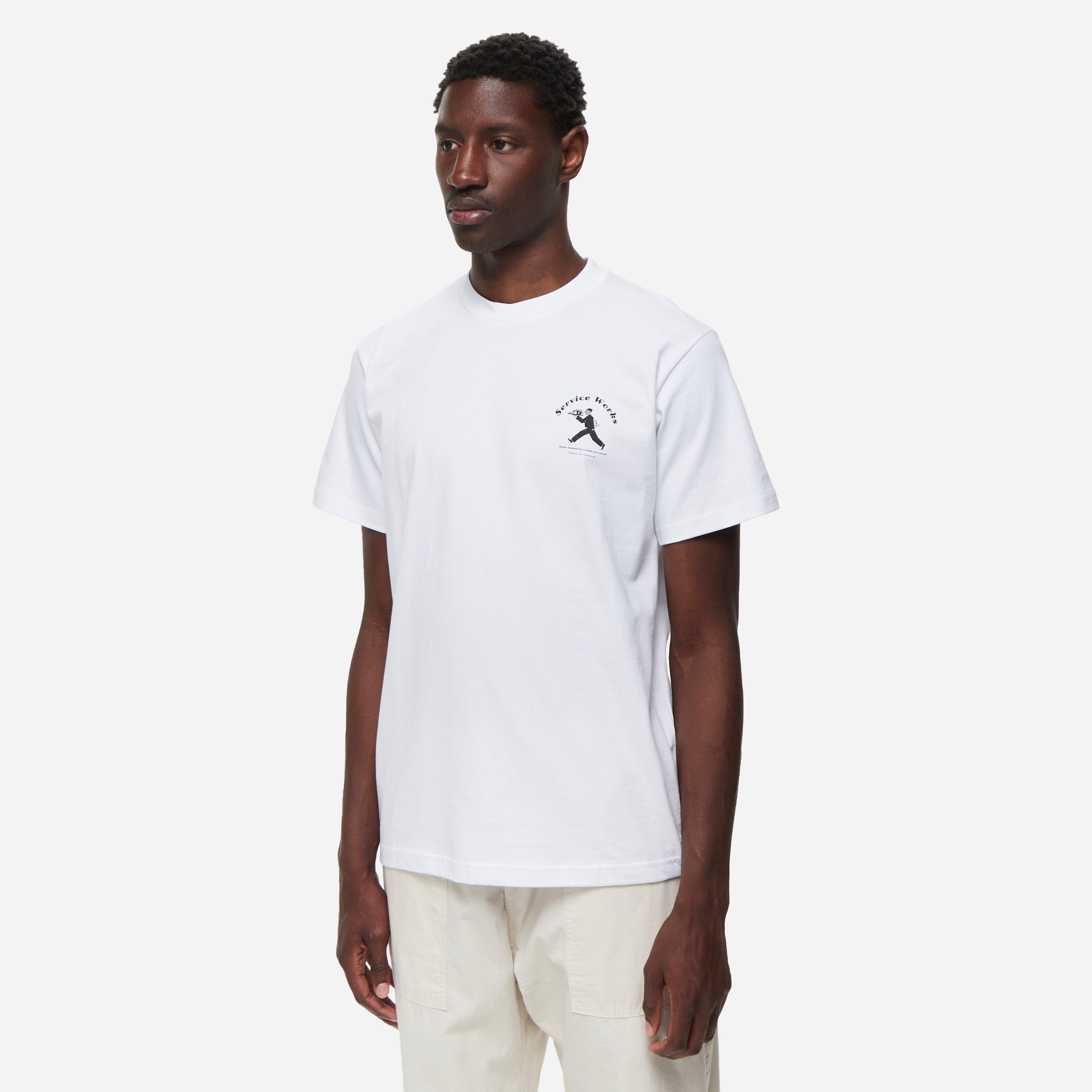 White – 100% organic cotton – Regular fit – 7oz heavyweight fabric – Garment dyed – Graphic screen prints – Model is 6’1’’ and wears a size medium.