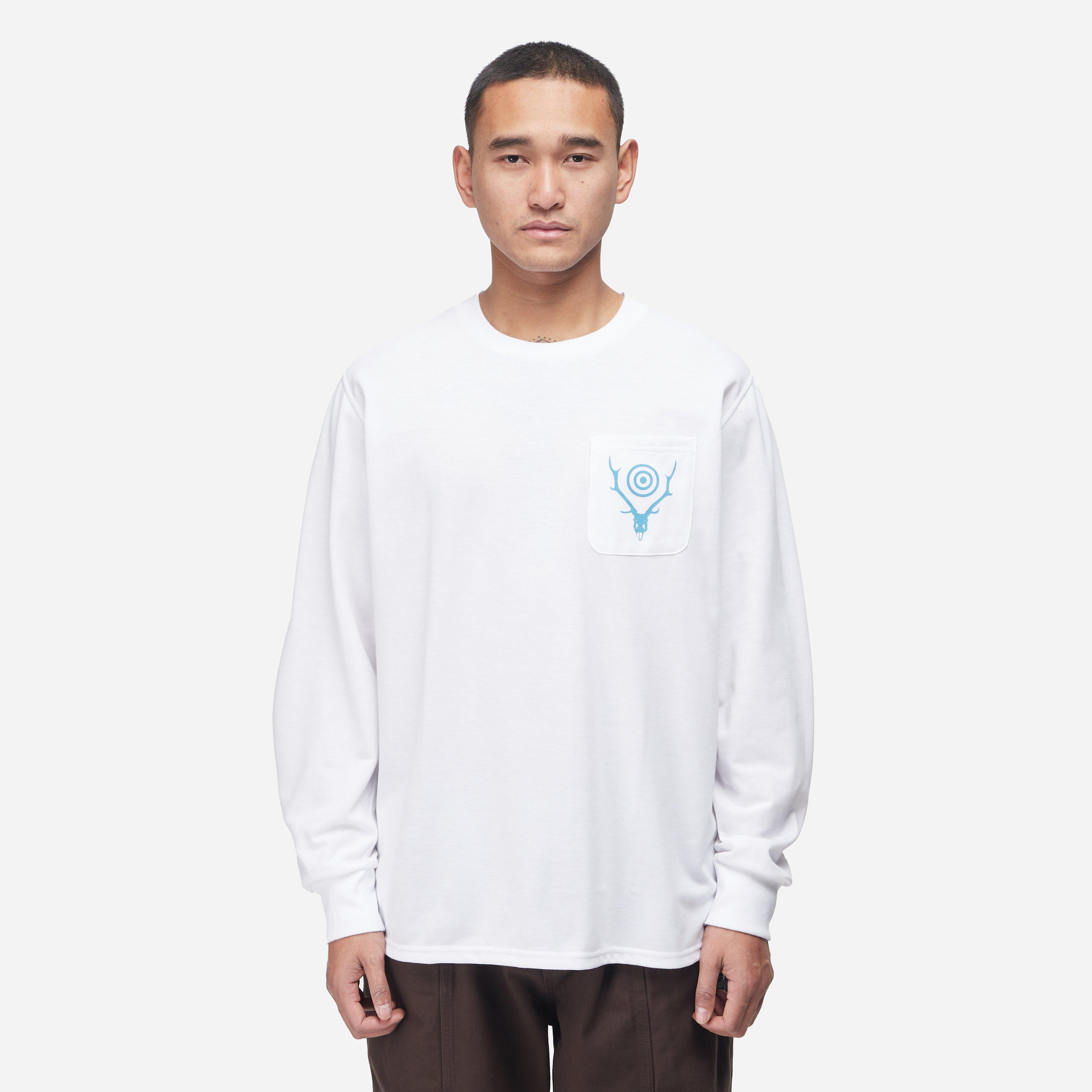 Nepenthes label South2 West8 present this Pocket Tee for SS23 - shaped to a boxy fit in a functional poly-cotton blend and decorated with the brand's signature deer head logo motif.