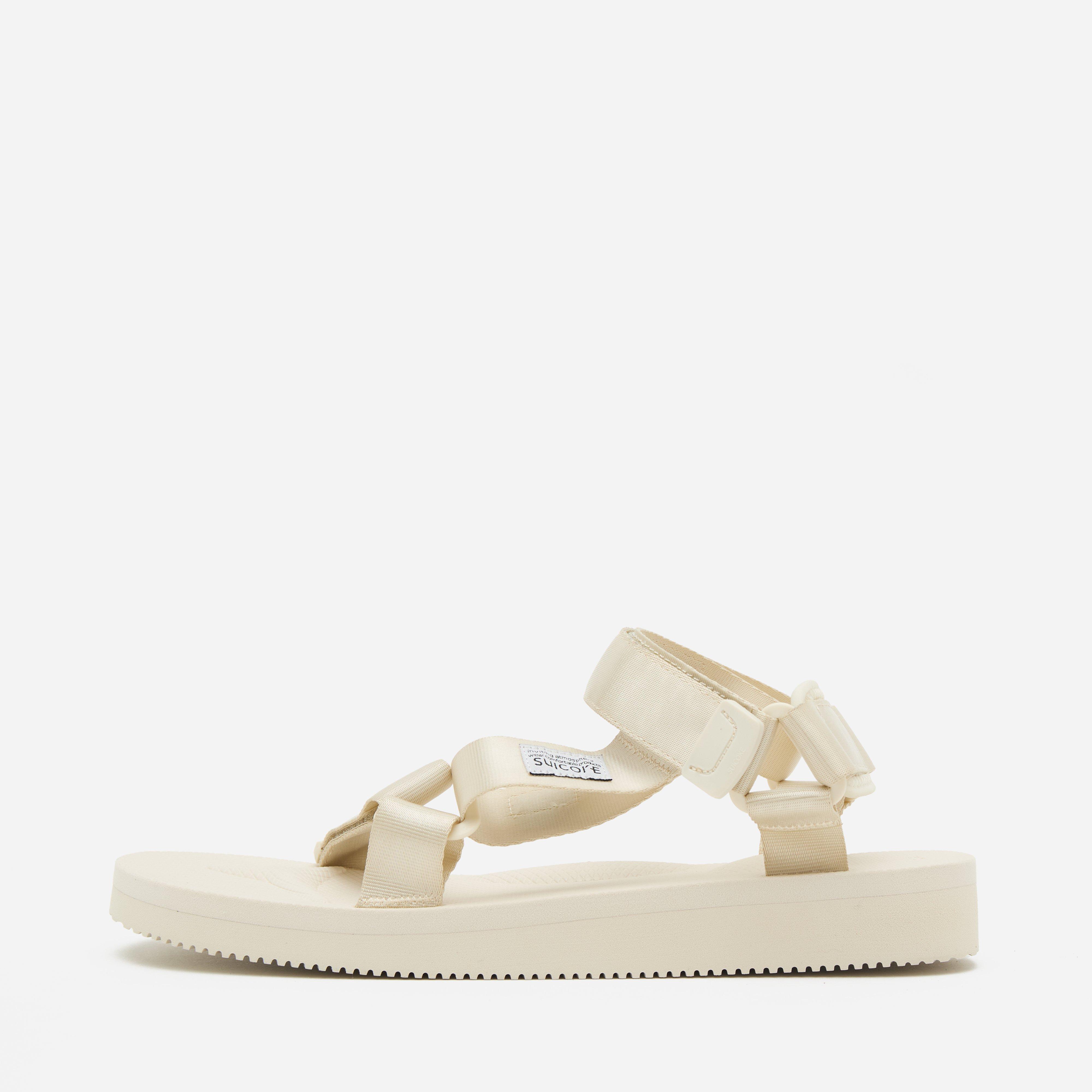 The Depa-Cab Sandal is a versatile sandal displaying Suicoke's refined functionality. It includes a comfortable EVA footbed and outsole with velcro straps and durable rubber outsoles for superior traction. Chalk - Textile upper, synthetic sole - Regular fit, take your normal size - Velcro straps - EVA midsole - Rubber outsole.