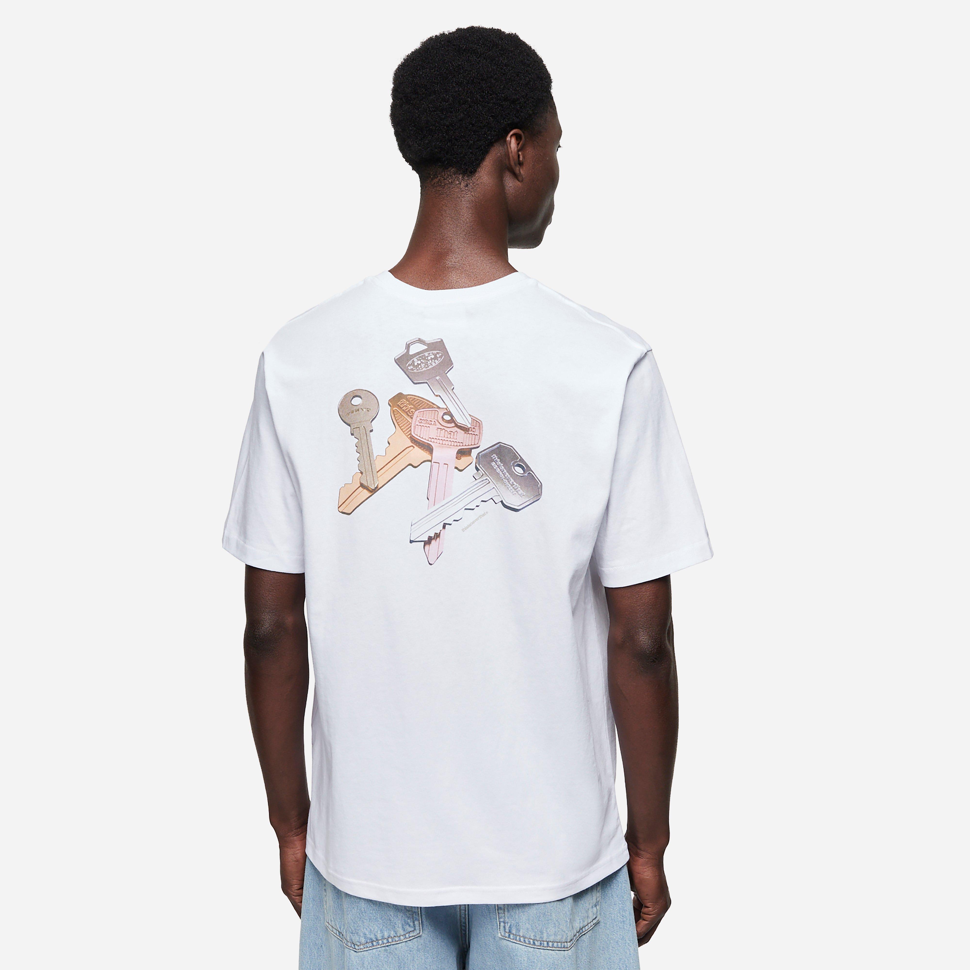 White – 100% cotton – Regular fit – 210gsm – Garment washed – Rib collar – Graphic print.