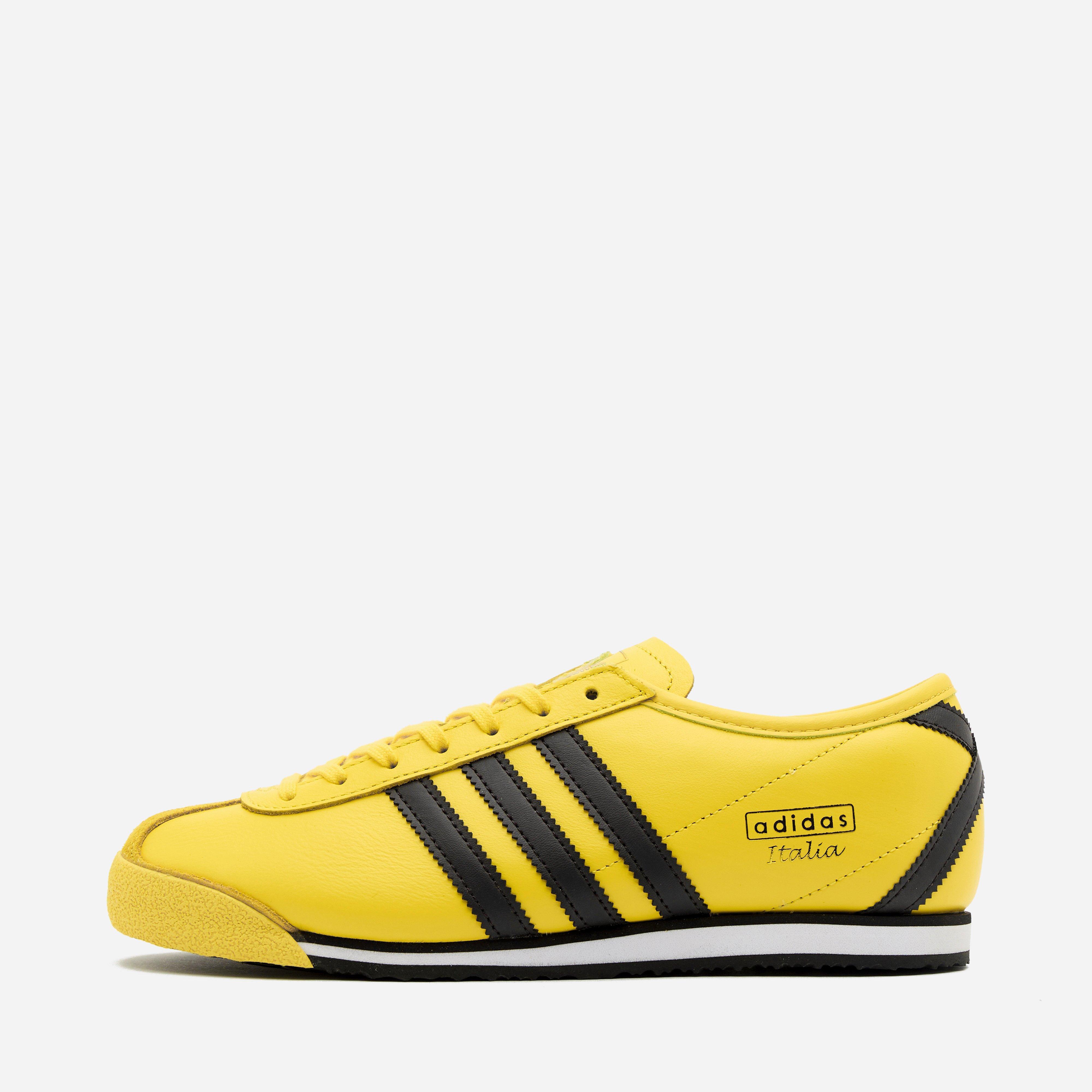 Yellow - Leather upper, synthetic sole - Trefoil tongue logo - Contrast serrated stripes - Suede T-toe - EVA midsole - Gold foil wordmark - Style code: JQ9071