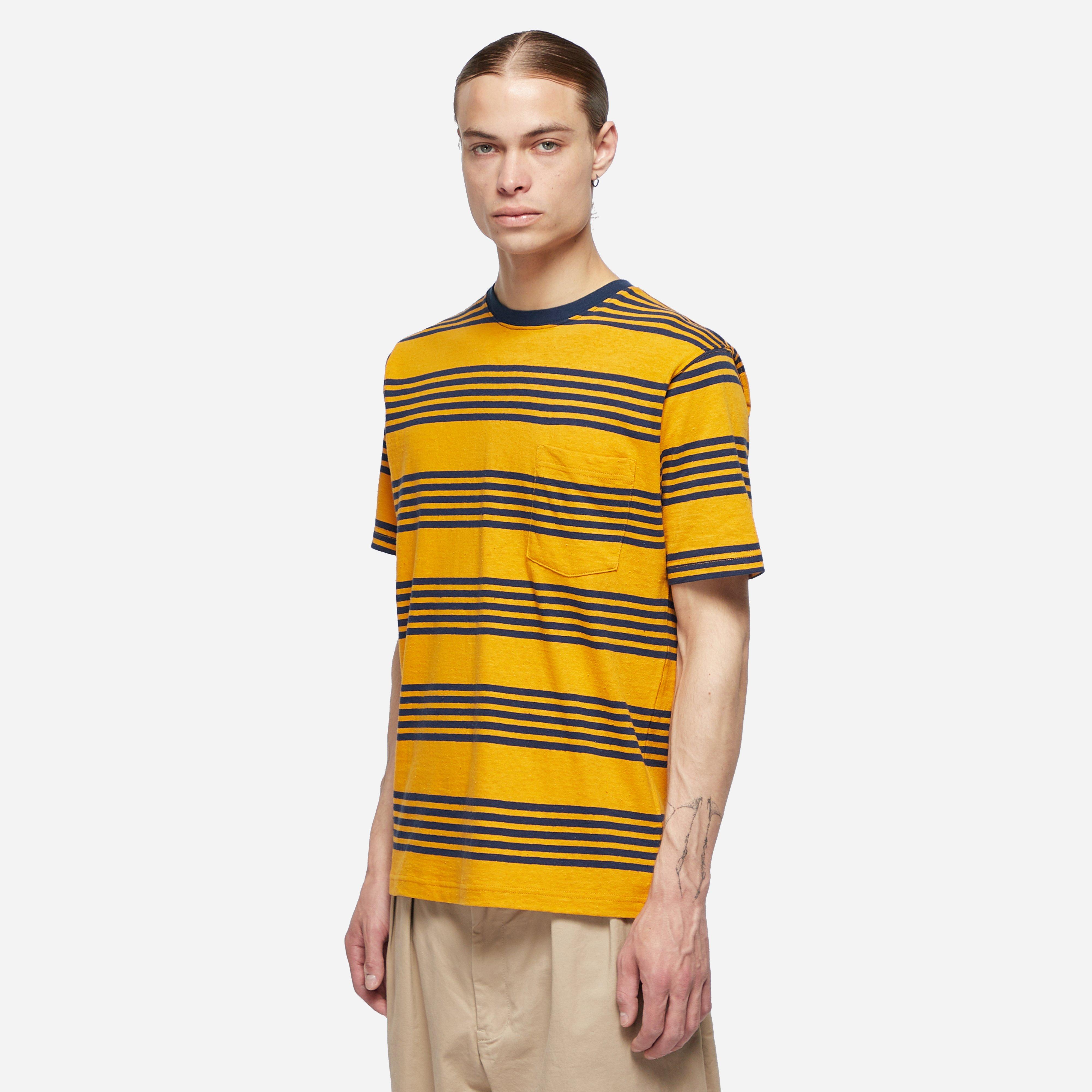 The Striped Tee is a staple Beams Plus item that returns each season. Yellow - 100% cotton - Patch pocket - Smaller fit, we suggest sizing up - Model is 6'1" and wears a size medium."