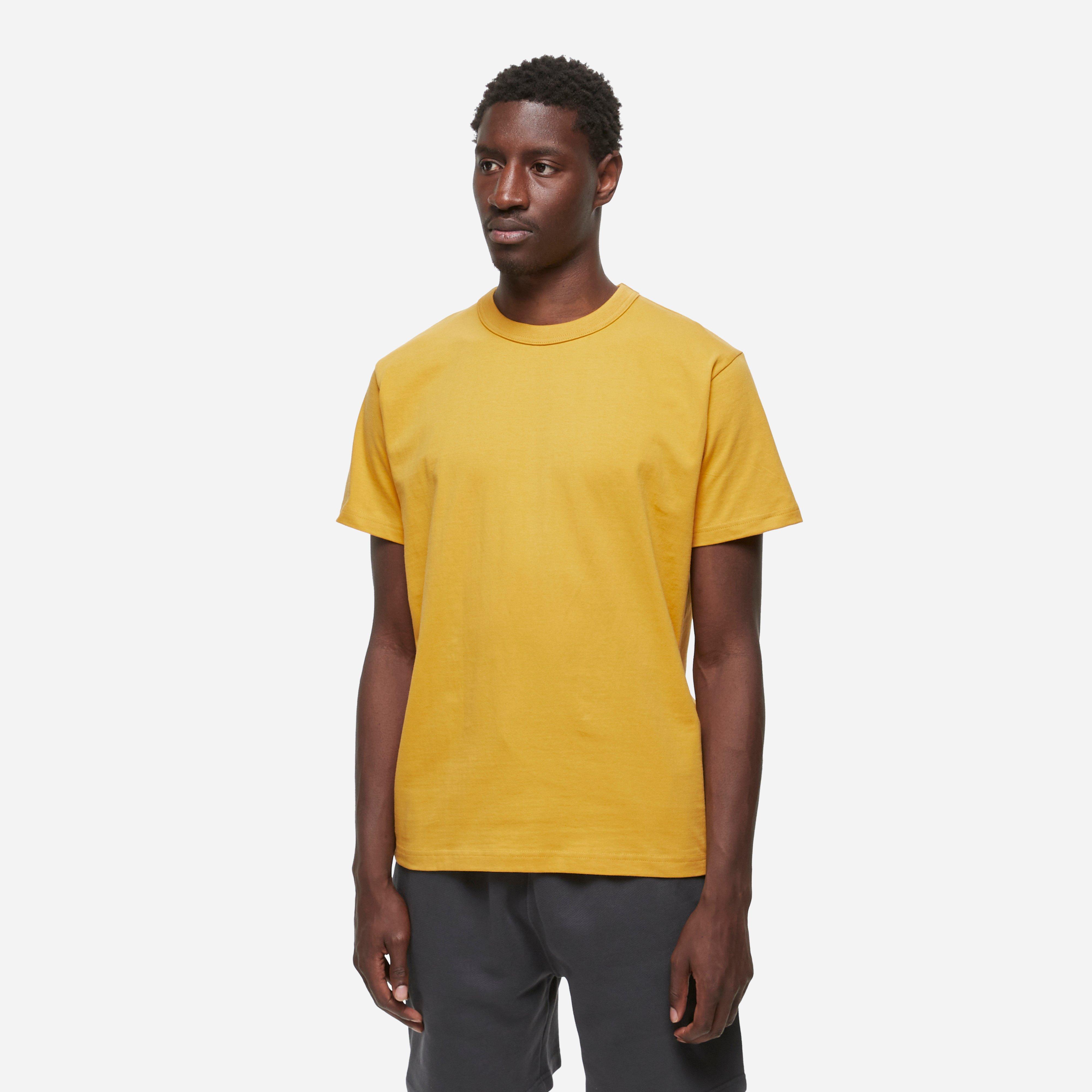 Yellow - 7.5oz GOTS organic cotton - 250gsm - Regular fit - Softhand feel - Top stitched neck - Model is 6'1" and wears a size medium